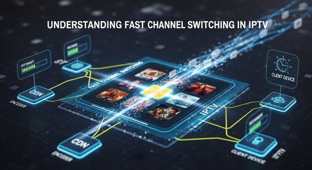 Fast channel switching refers to how quickly an IPTV service changes from one channel to another when a user presses the channel up/down button or selects a new channel. In high-quality IPTV services, channel switching takes less than one second.